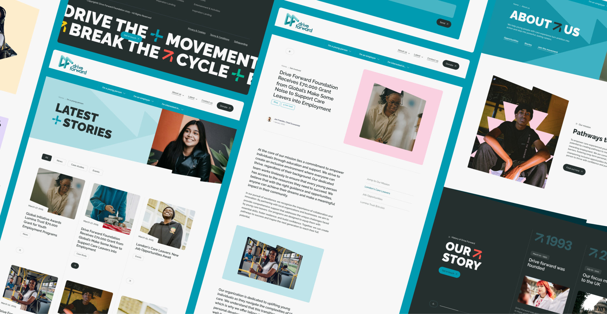 We built a bold, flexible design system for Drive Forward, one that could carry their message with clarity and impact. From expressive typography to dynamic layouts and distinctive shape assets, every element was designed to move with purpose across the site.